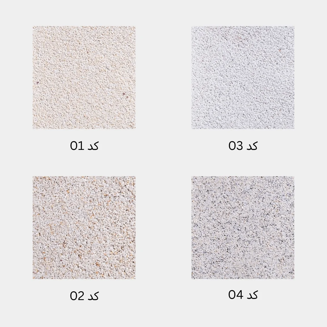 متریال مرغوب از سنگدانههای طبیعی با اندازه یکنواخت و رزینهای با کیفیت بالا ساخته میشود. هنگام خرید، مطمئن شوید که محصول از تامینکننده معتبر و با استانداردهای صنعتی تهیه شده است تا دوام و چسبندگی نما تضمین شود.نوع پوشش و بافت: